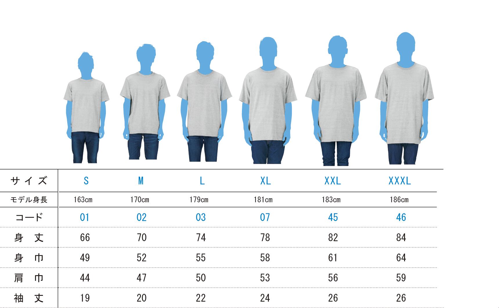 図柄は、Tシャツの全サイズで共通の大きさです。